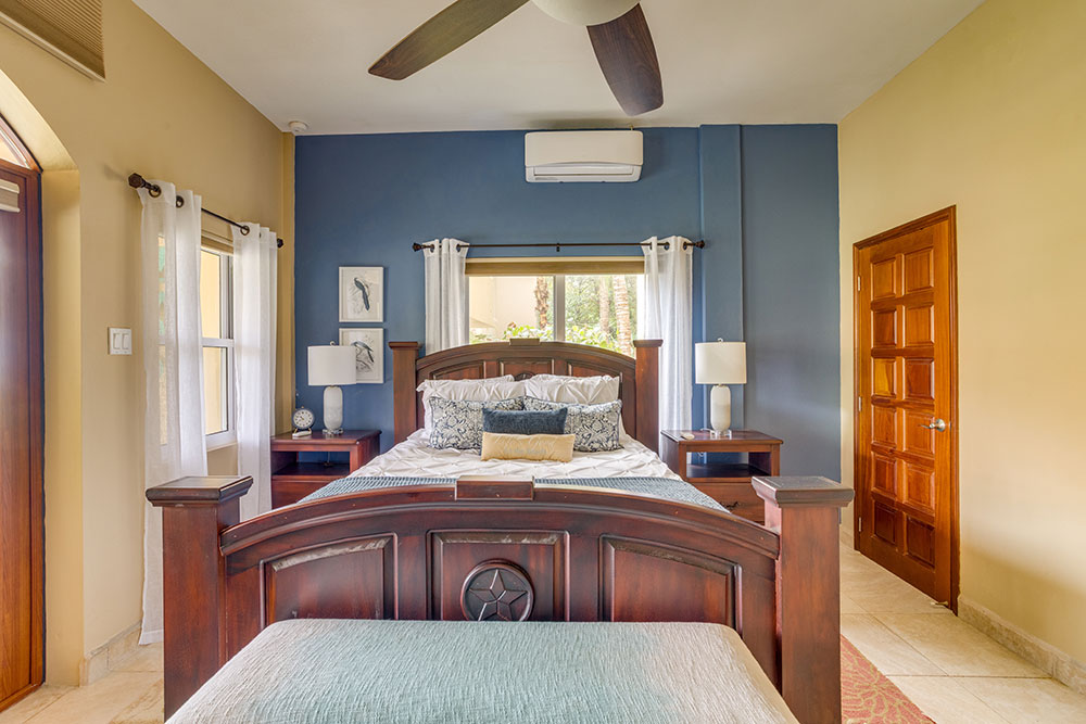 The living area is designed for both comfort and entertainment, with plush seating and a Smart TV—ideal for movie nights or catching up on your favorite shows. With air conditioning throughout, the villa ensures a cool and comfortable environment, no matter the season. Plus, the added convenience of a washer and dryer allows you to refresh your wardrobe during your stay.